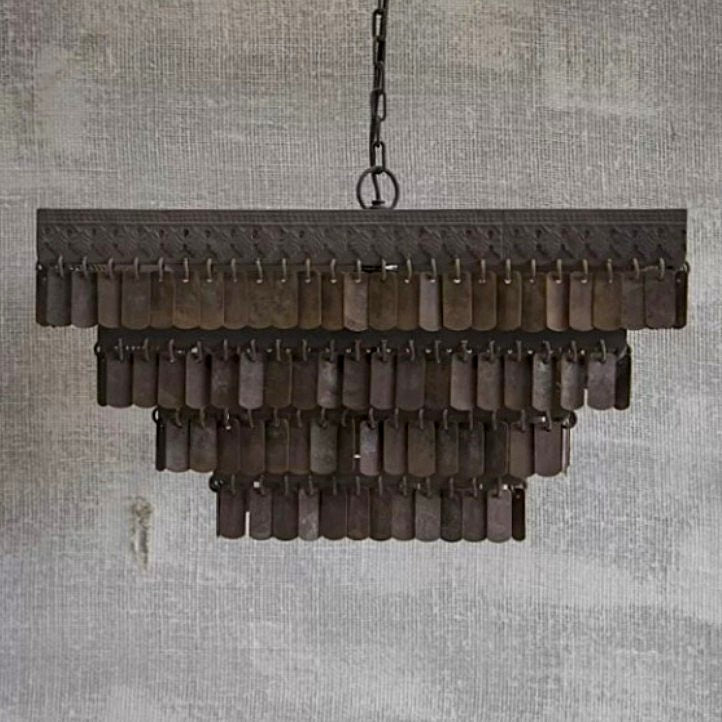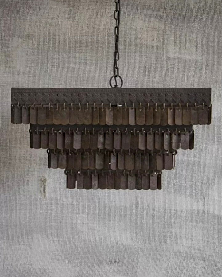 Hanglamp Gudha van Hoffz, vierkant. De welbekende Gudha-lampenlijn van Hoffz Interior. De lampen in deze collectie worden gekenmerkt door een ijzeren frame met kleine, rechthoekige hangertjes die zorgen voor een ontwerp dat zowel robuust als verfijnd oogt. Na vervaardiging worden de lampen blootgesteld aan de natuurlijke elementen, deze behandeling geeft de lampen de kenmerkende verweerde look. Mooi bijkomend voordeel: elk exemplaar vormt een uniek item.