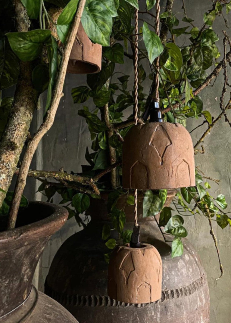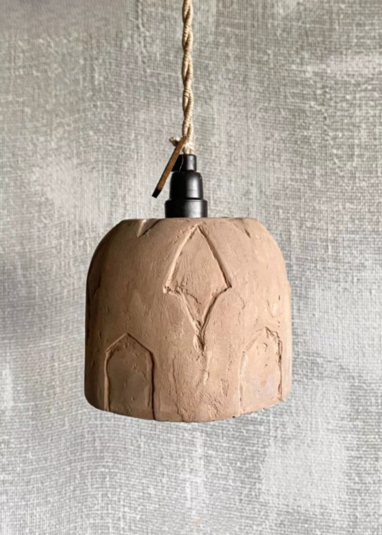 Hanglamp Yogi van Hoffz. Een speels ontwerp en een leuke blikvanger; dat is de Yogi hanglamp vervaardigd uit beton met mooie motieven, gedraaide touwkabel en warme kleur  voor in ieder interieur! De oneffenheden en imperfecties zijn inherent aan het lampje (daar heeft Hoffz juist voor gekozen!) en ze worden met de hand gekleurd, ieder lampje is hierdoor uniek.