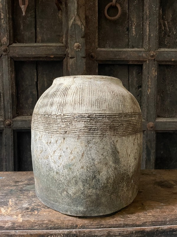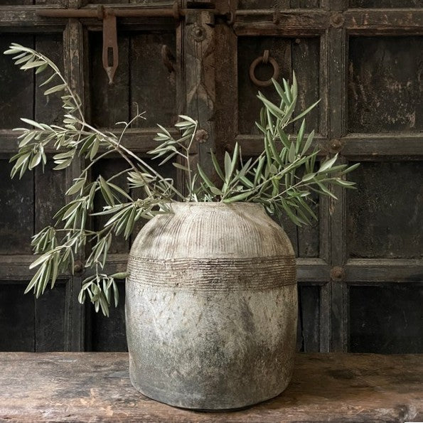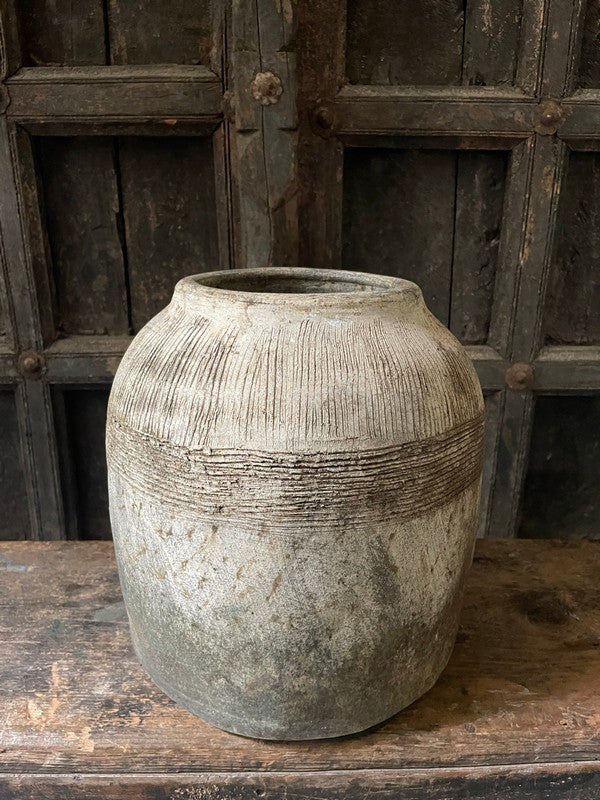 Aardewerk pot, afkomstig uit India. Mooi model, staat prachtig met een plant, bos bloemen of veldboeket bijvoorbeeld (wel een binnenglas gebruiken).