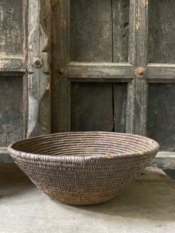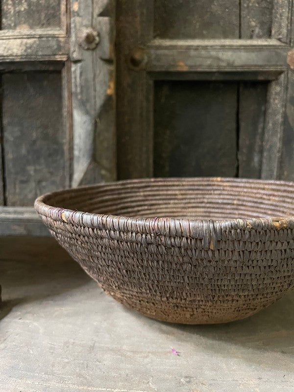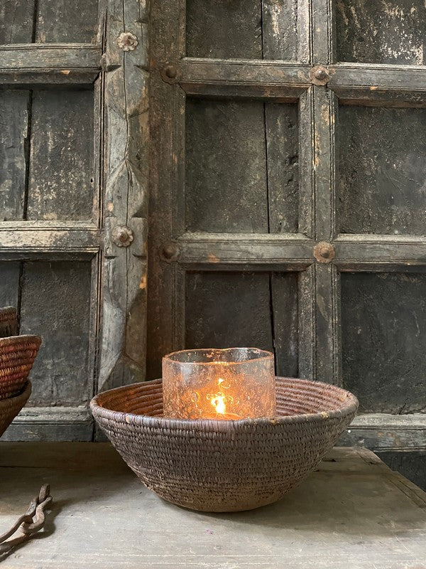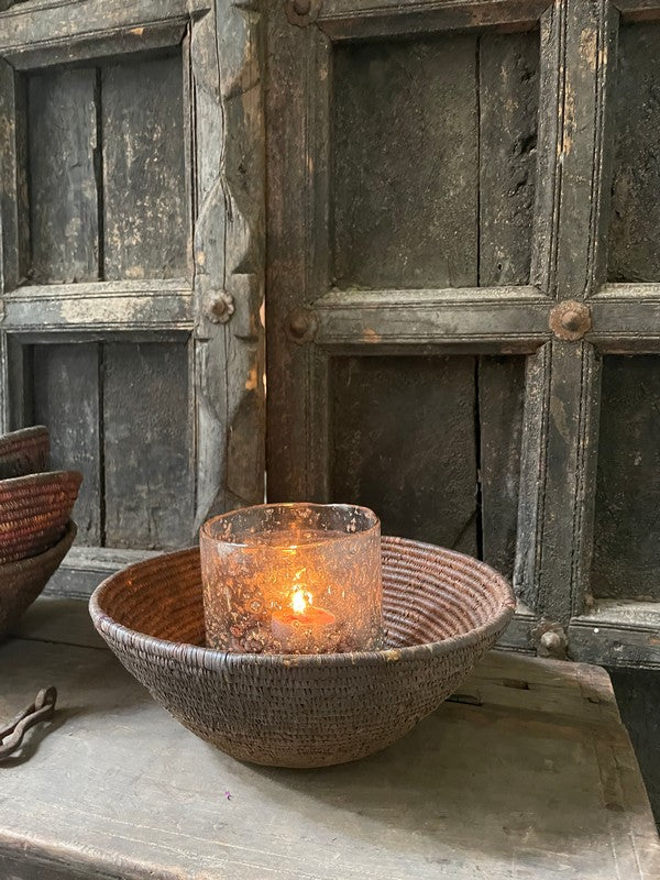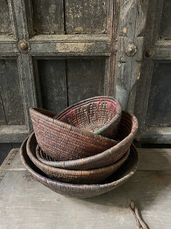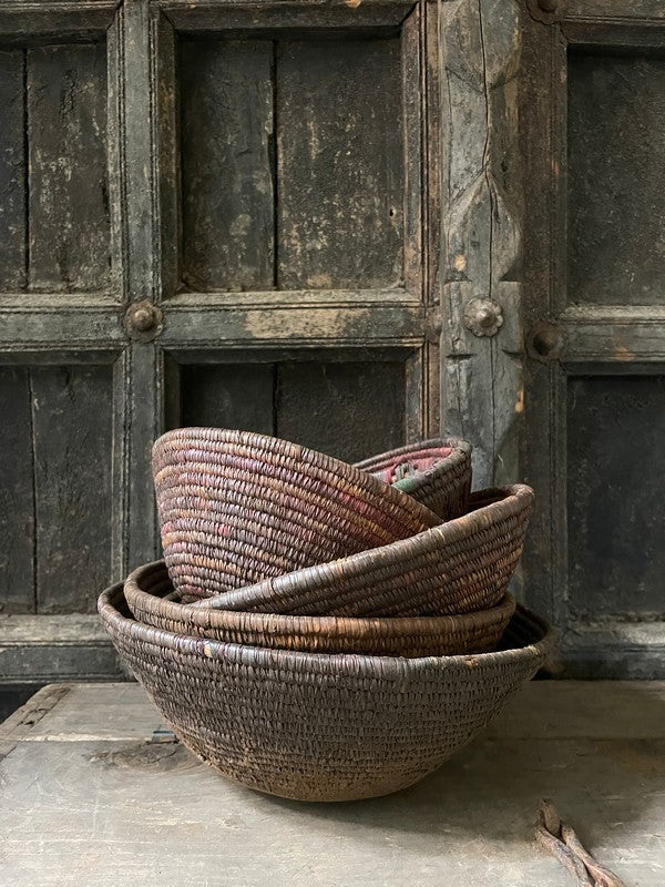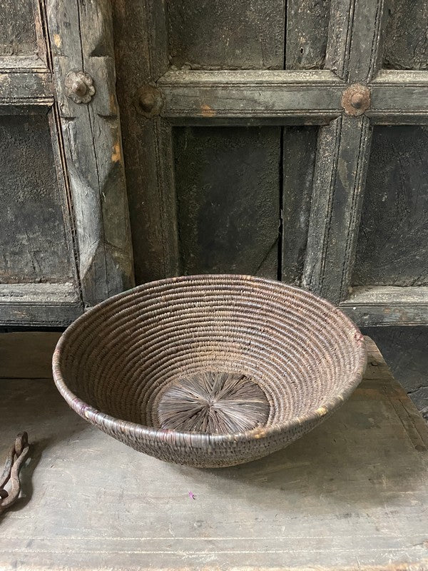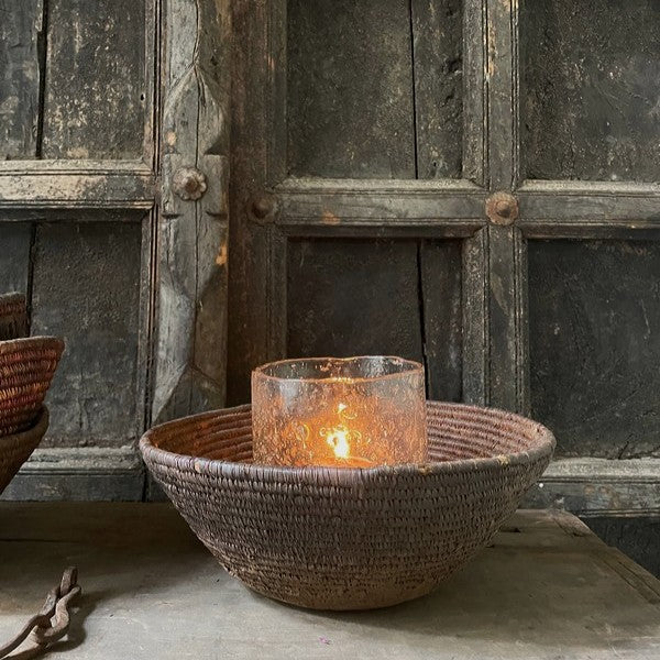 Authentiek desert mandje uit het woestijngebied in India. Deze mandjes zijn prachtig in hun originele bruin- en auberginetinten. Mooi als serveerschaaltje of met een glazen windlichtje, of stapel deze mandjes voor een speels effect.