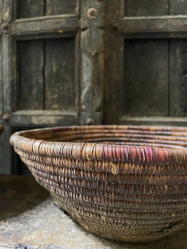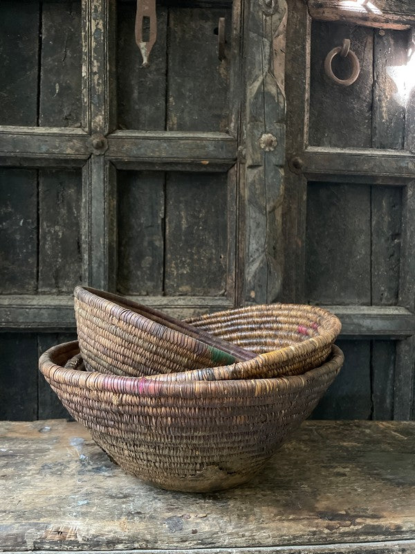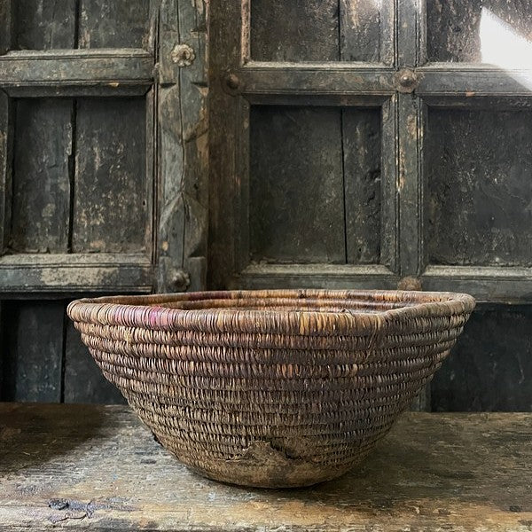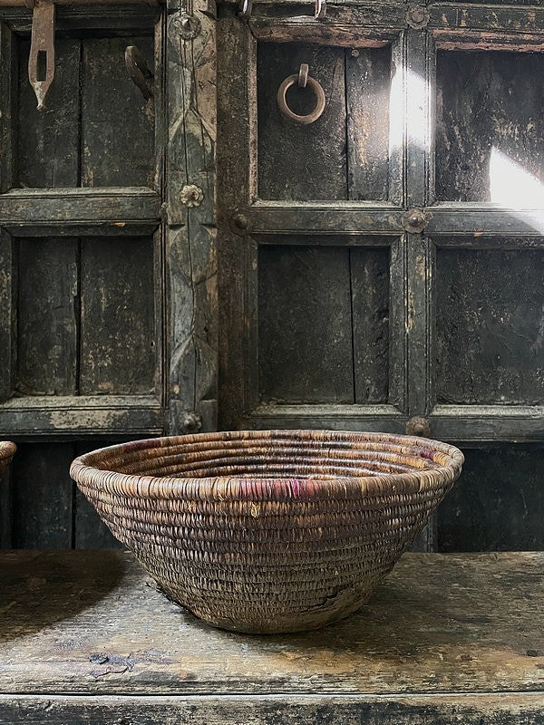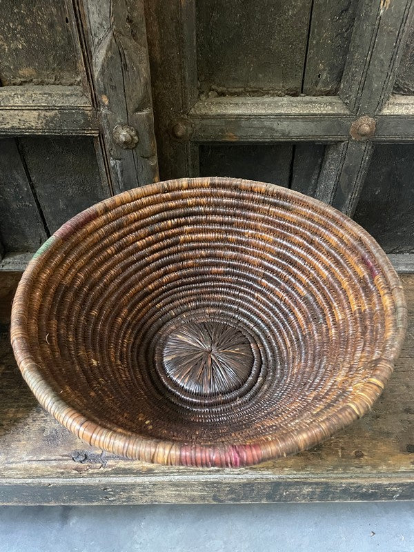 Authentiek desert mandje uit het woestijngebied in India. Deze mandjes zijn prachtig in hun originele bruin- en auberginetinten. Mooi als serveerschaaltje of met een glazen windlichtje, of stapel deze mandjes voor een speels effect.