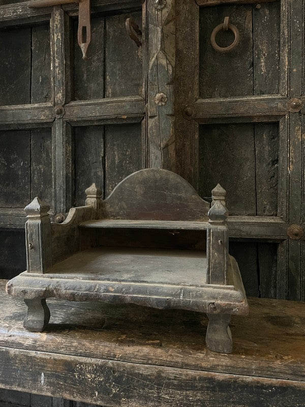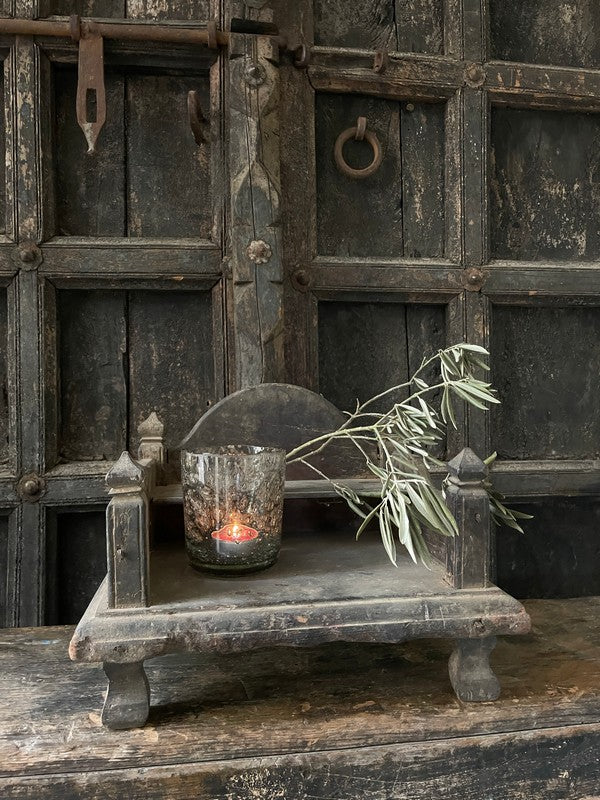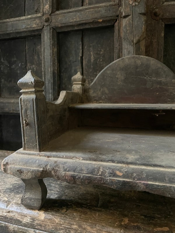 Antigua mesa de madera de un templo nepalí. Hermosa, con un encanto rústico y un estilo sencillo, es perfecta como pequeño mueble auxiliar o con una lámpara. También luce estupenda en la encimera de la cocina.