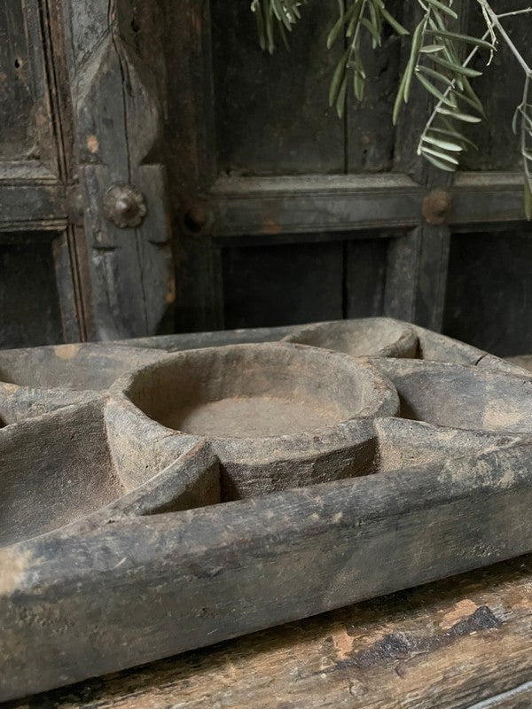 Antigua caja de hierbas de madera de Nepal. Con un bonito aspecto envejecido y un estilo discreto, también crea una atmósfera maravillosa con una vela LED o una pequeña linterna.